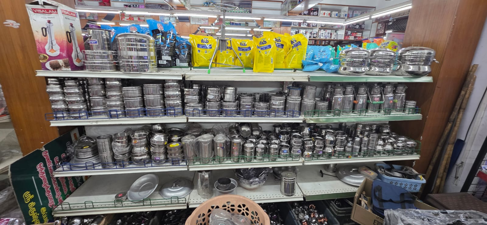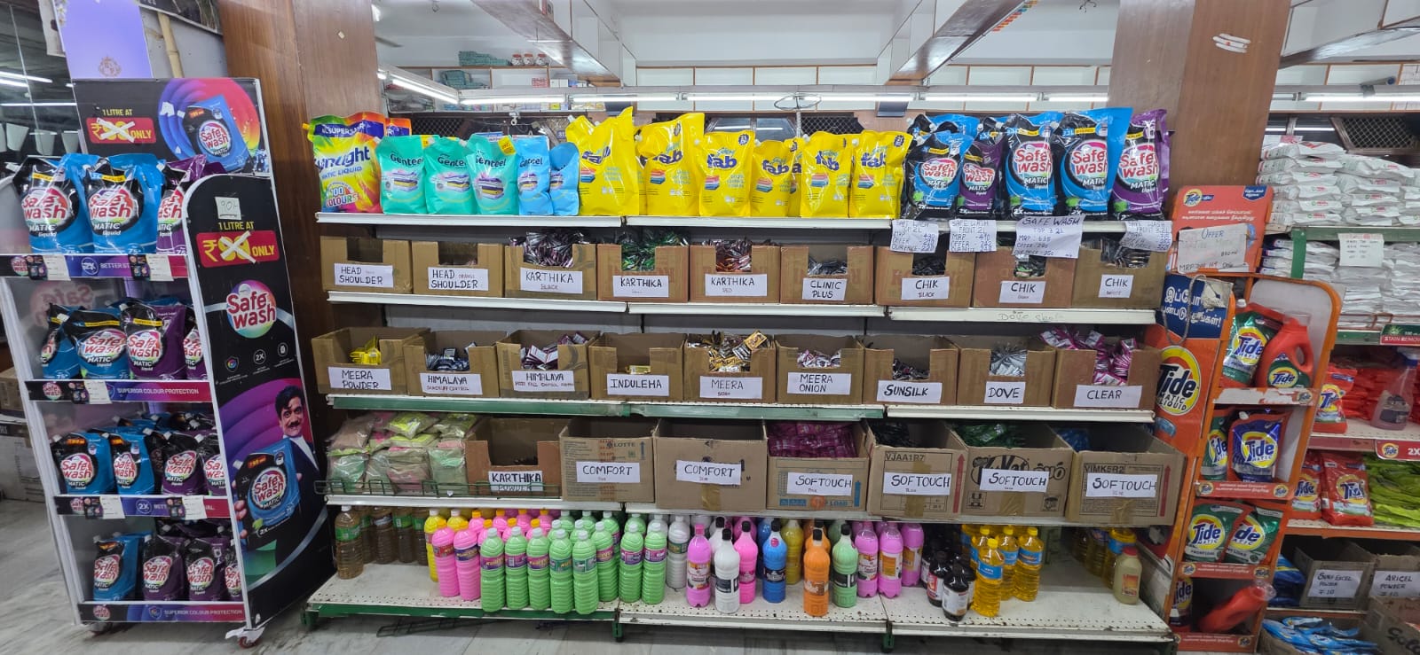 Sri Krishna Stores is a long-standing department store in Tirupur, catering to everyday household needs including groceries, edible oils, cleaning supplies, and essential home products.